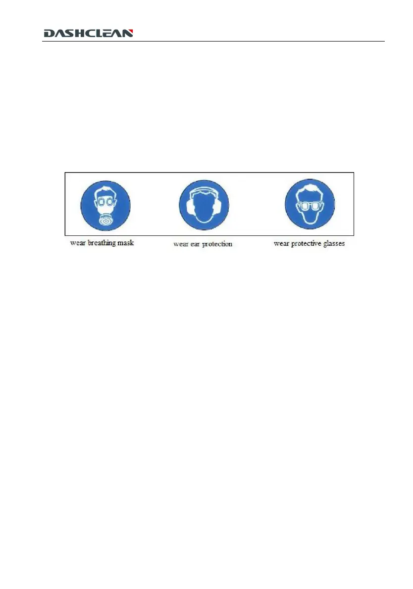 wear protective glasses, protective gloves, and a breathing mask conforming to