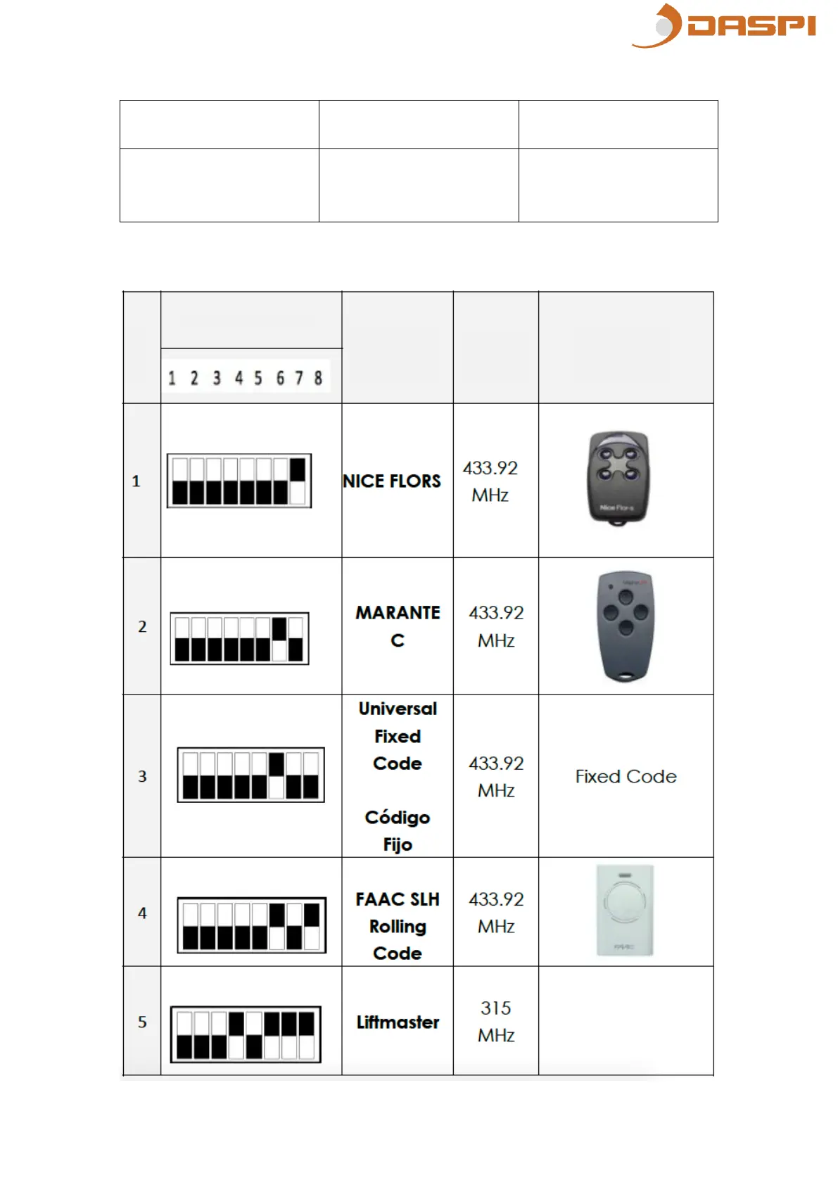 Daspi PASSAGE - Brand Selection Guide; Remote Control Compatibility