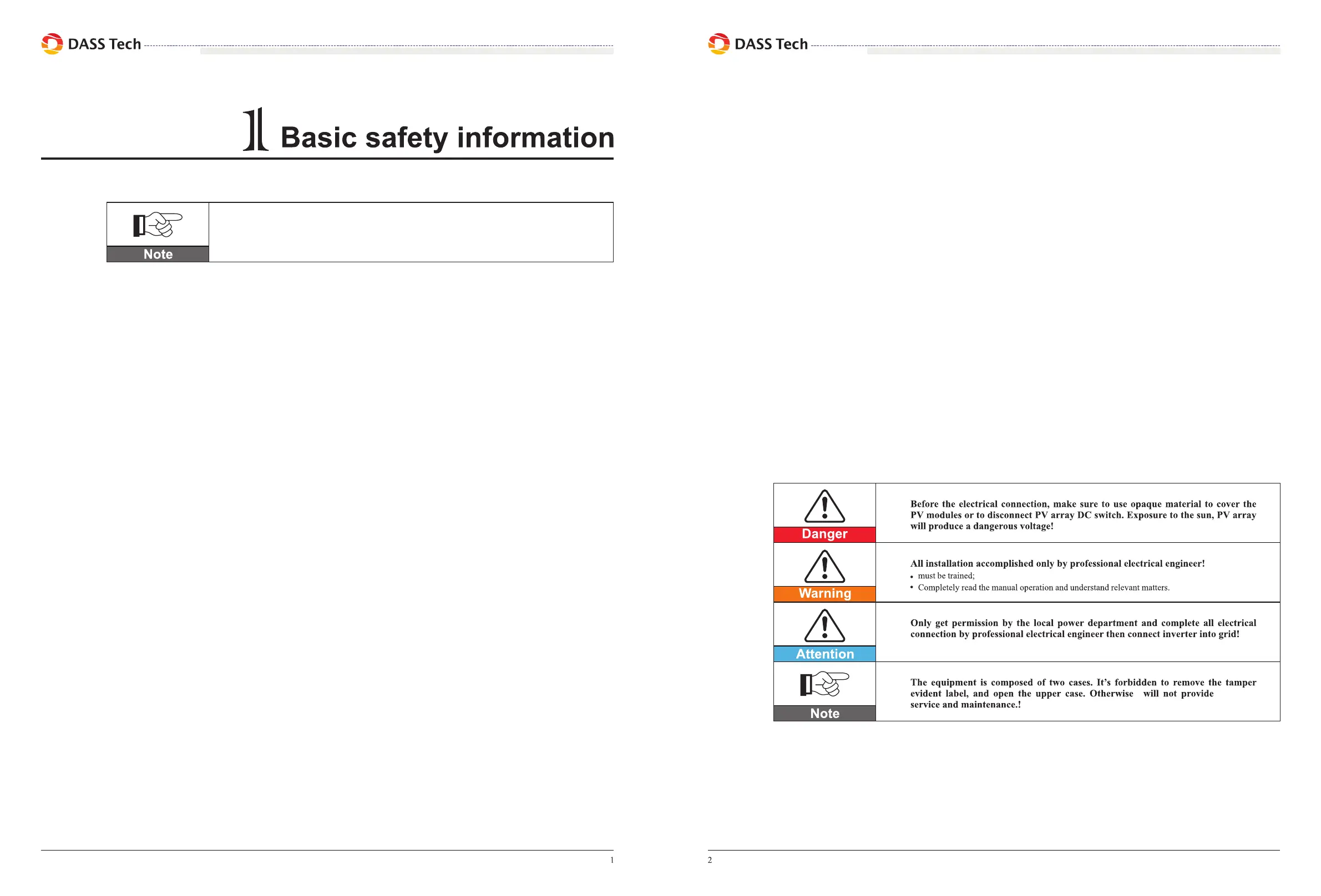 DASS TECH inverters must be installed according to the national and local grid standard and