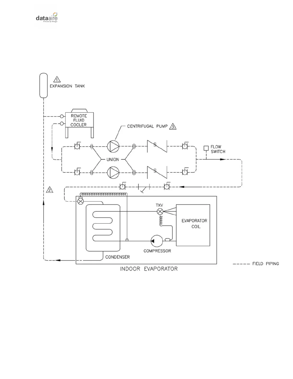 Data Aire as an option, along with field provided union(s), shutoff valves, check valve(s) and a flow
