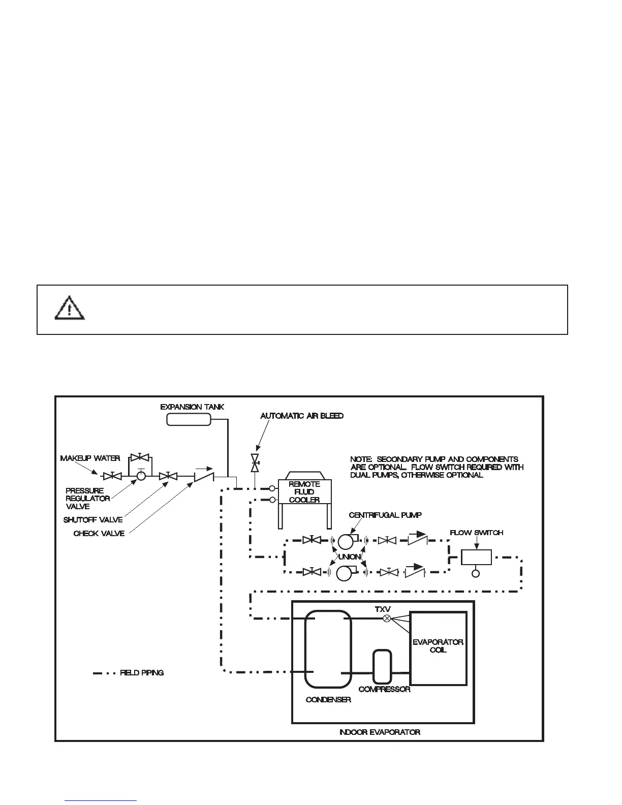 sizes at the evaporator or fl uid cooler. (Refer to 2.1.4 for connection sizing.) This will depend on the