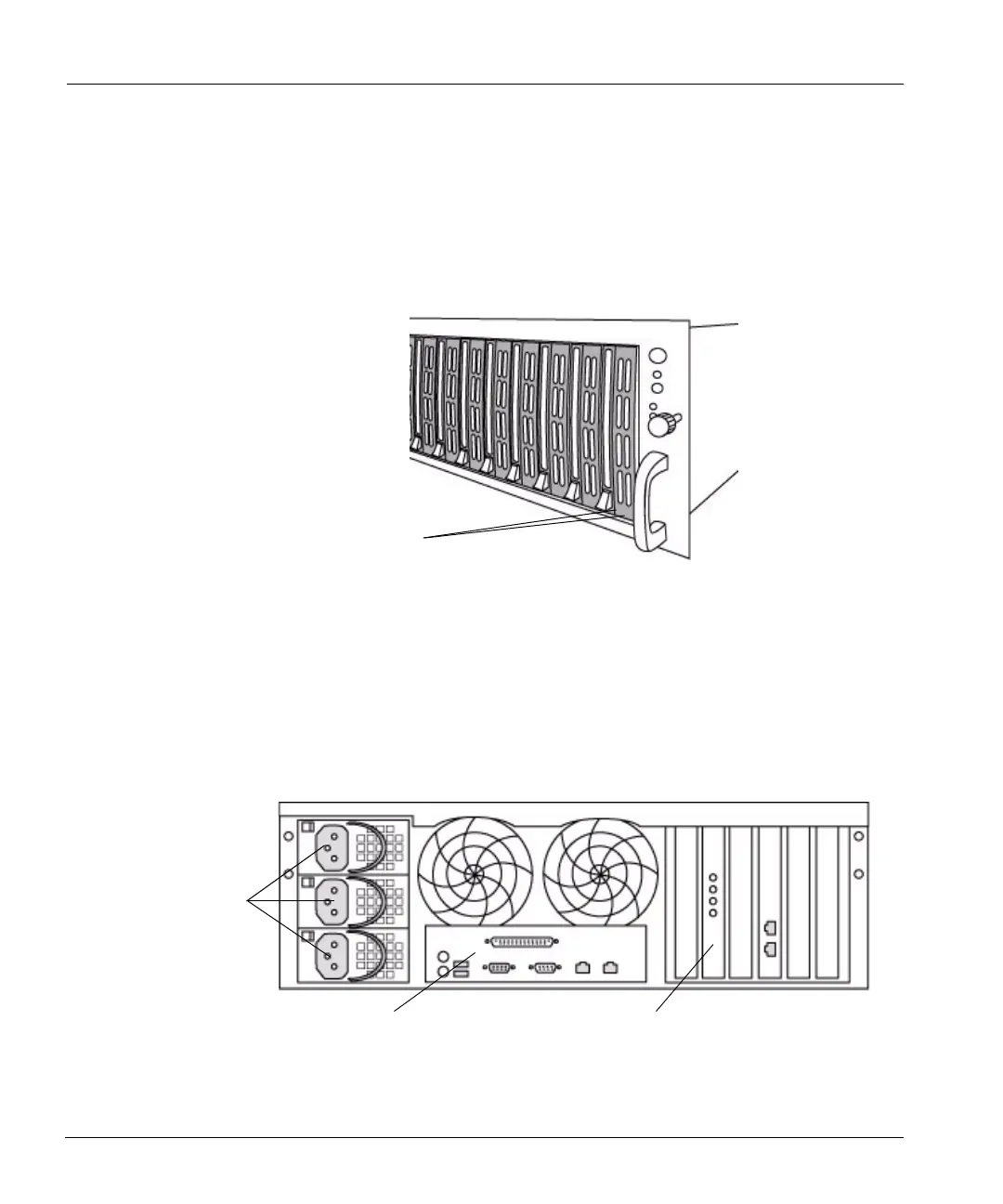 The back panel has three major functional areas: the power supply units, a hardware interface
