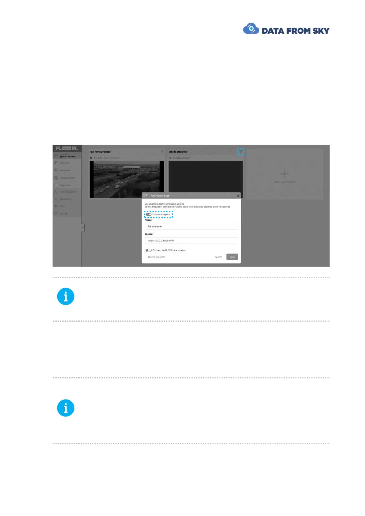 Configuration and processing of the analytics based on file streamer is identical to the
