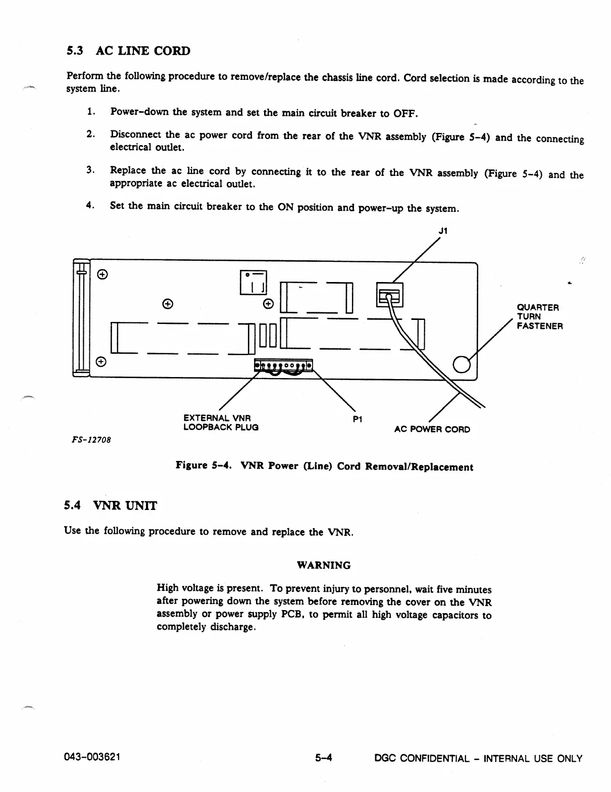Figure 5-4. 'VNR Power (Line) Cord Removal/Replacement