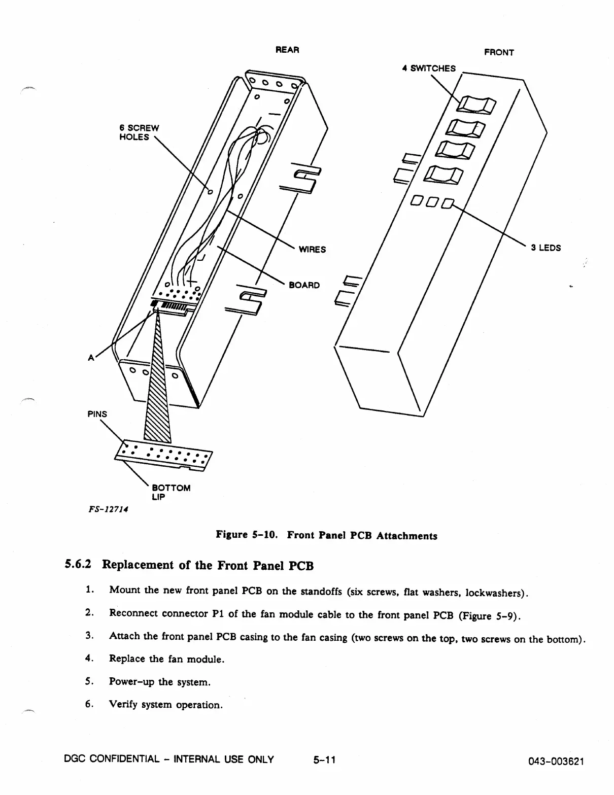 Mount the new front panel PCB on the standoffs (six screws, flat washers, lockwashers).