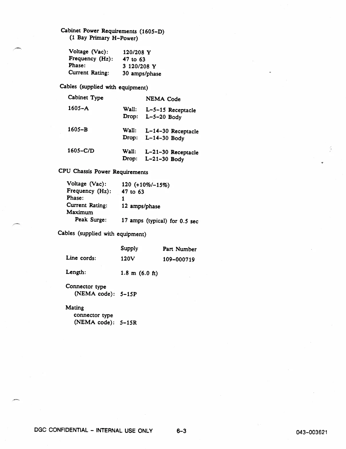 Cabinet Power Requirements (1605-D)