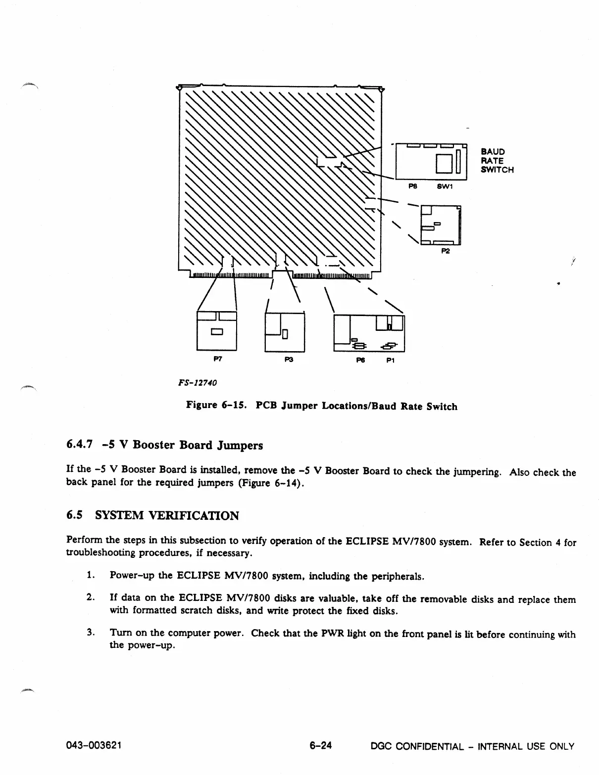 If data on the ECLIPSE MV/7800 disks are valuable, take off the removable disks and replace them