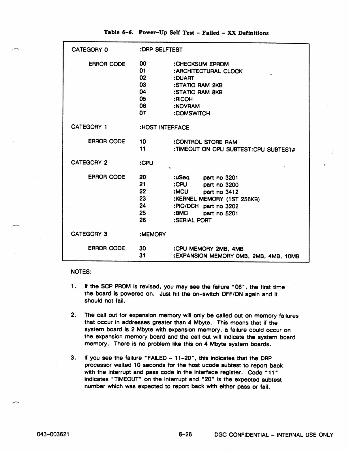 Table 6-6. Power-Up Self Test - Failed - XX Definitions