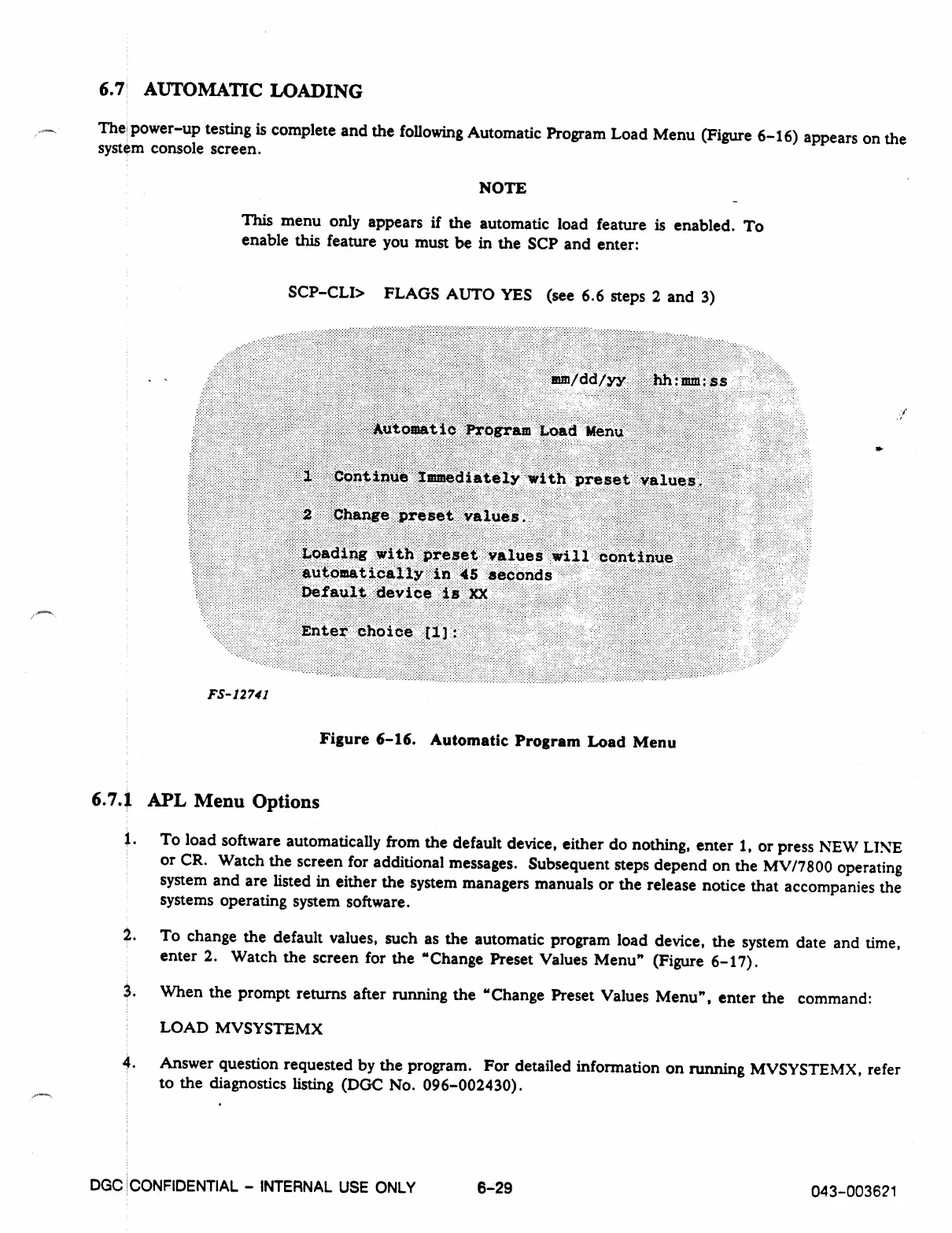 Figure 6-16. Automatic Program Load Menu