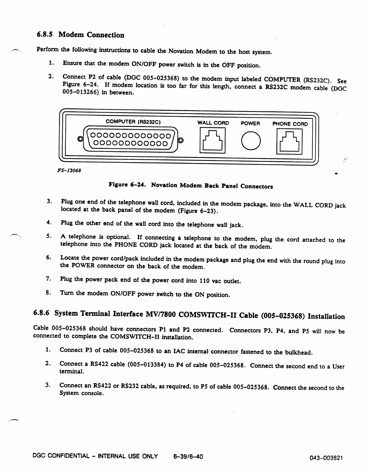 Figure 6-24. If modem location is too far for this length, connect a RS232C modem cable (DGC
