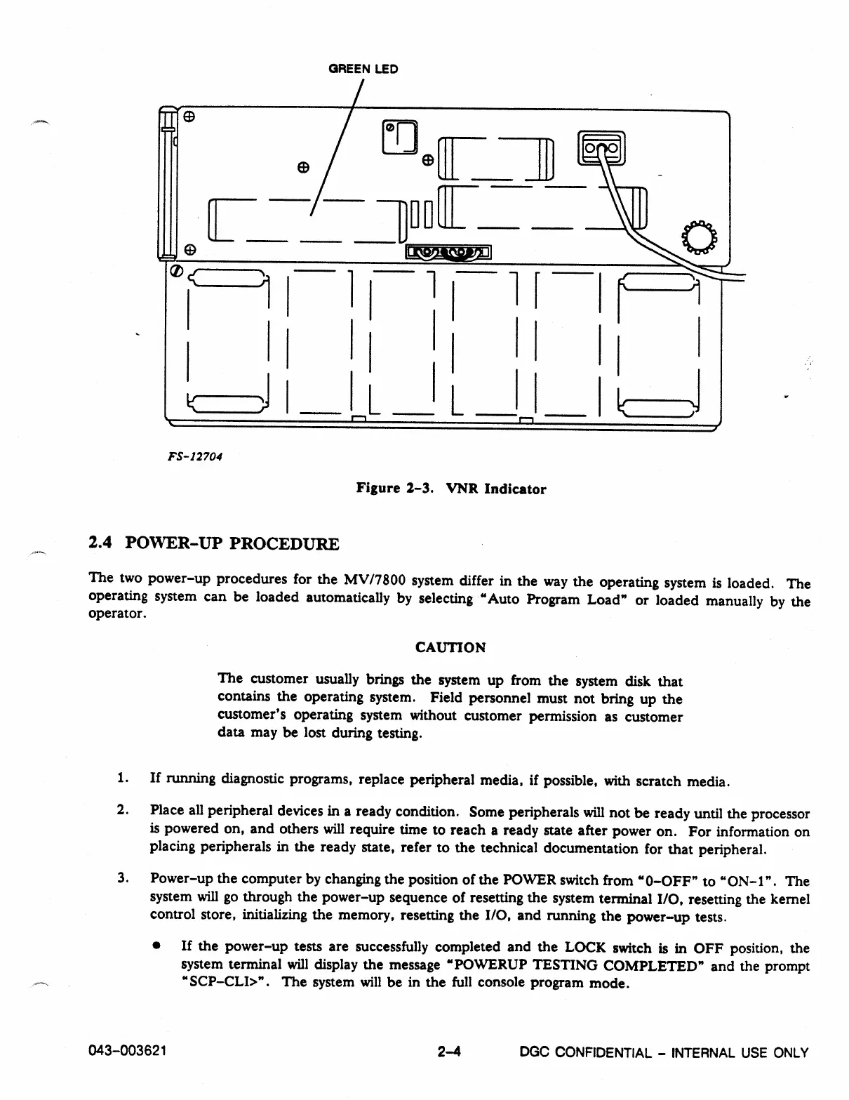 The two power-up procedures for the MV/7800 system differ in the way the operating system is loaded. The