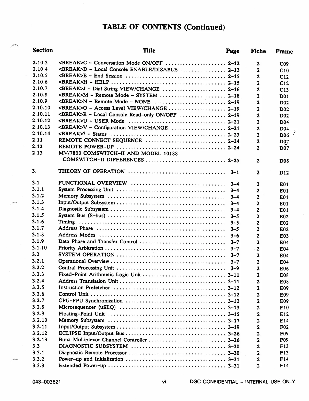 MV/7800 COMSWITCH-II AND MODEL 10188