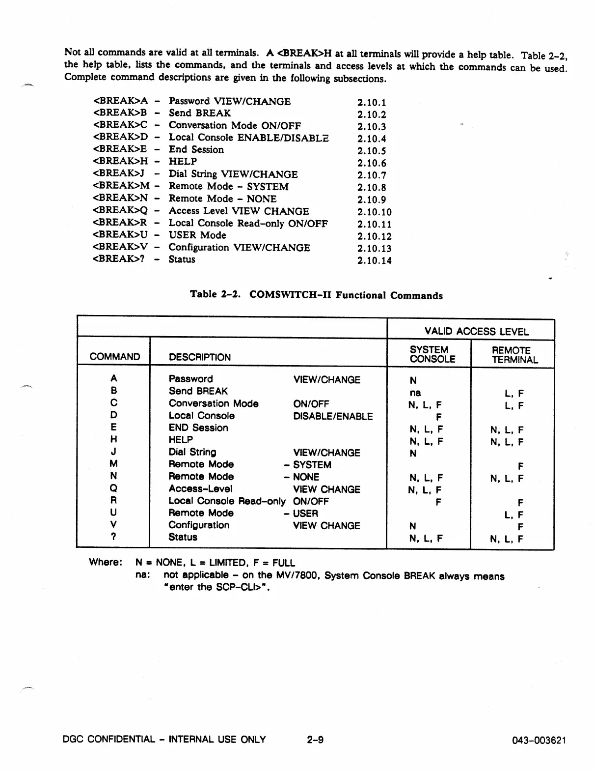 <BREAIC>H at all terminals will provide a help table. Table 2-2,
