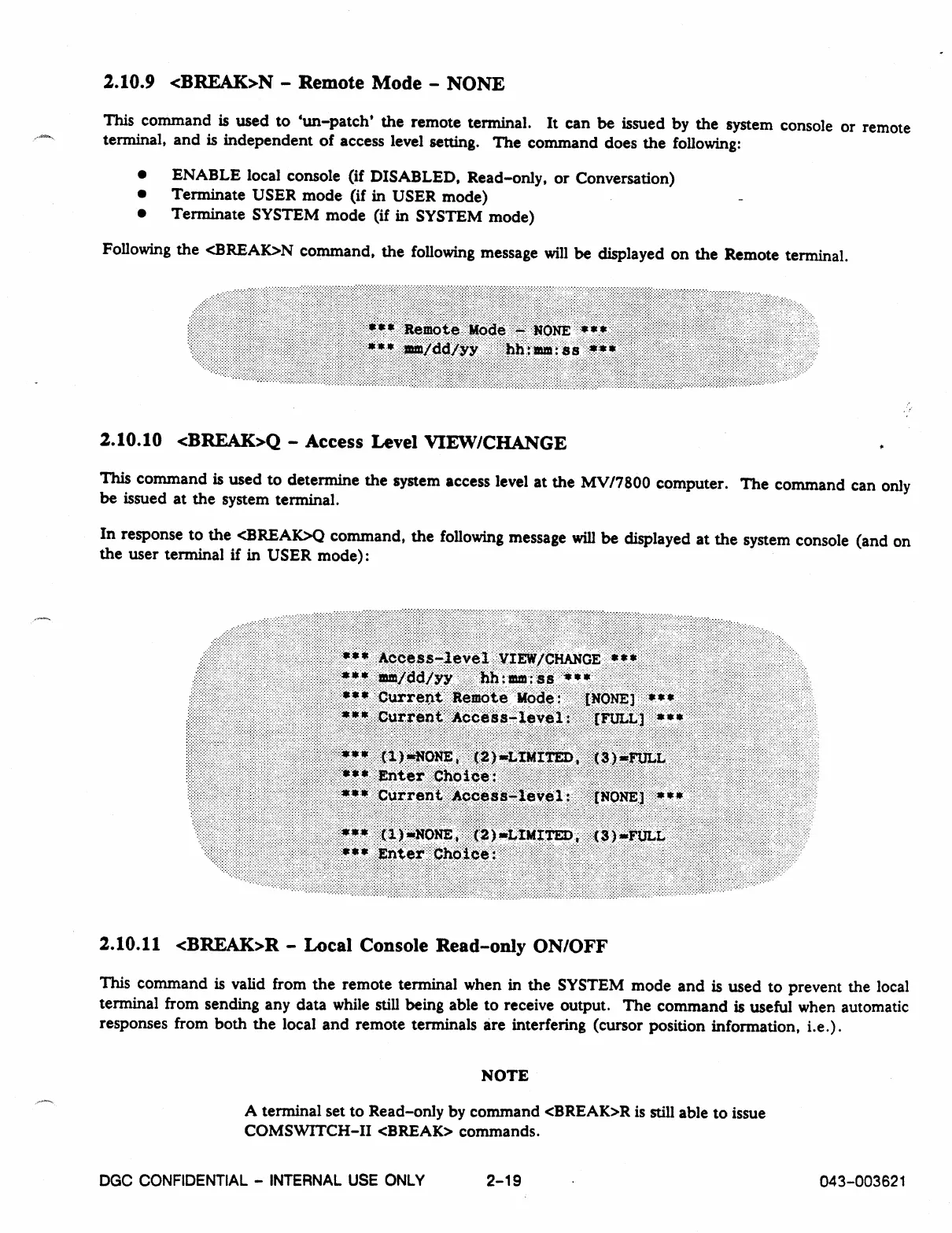2.10.11 <BREAK>R - Local Console Read-only ON/OFF
