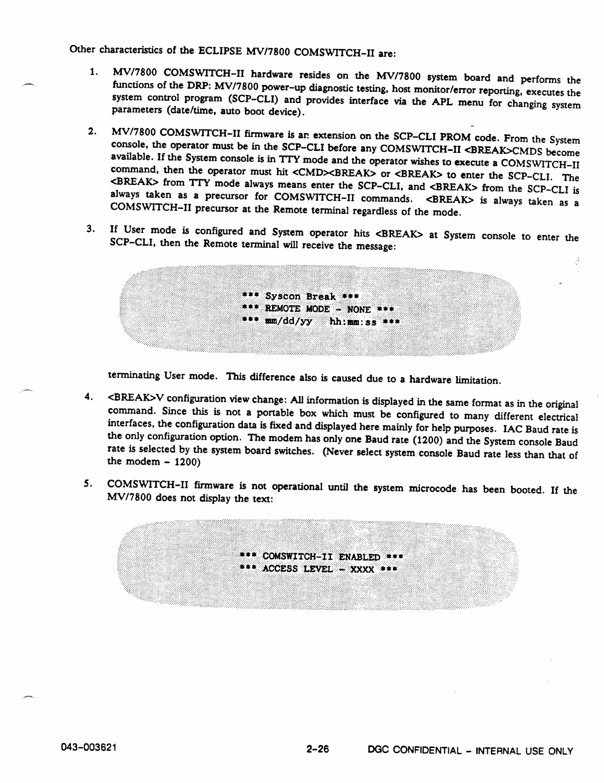 console, the operator must be in the SCP-CLI before any COMSWITCH-II <BREAK>CMDS become
