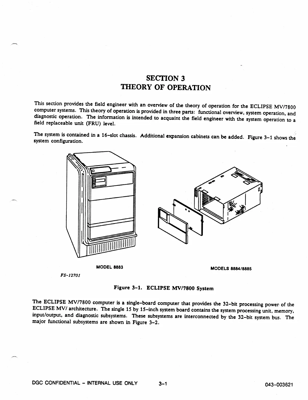 This section provides the field engineer with an overview of the theory of operation for the ECLIPSE MV/7800