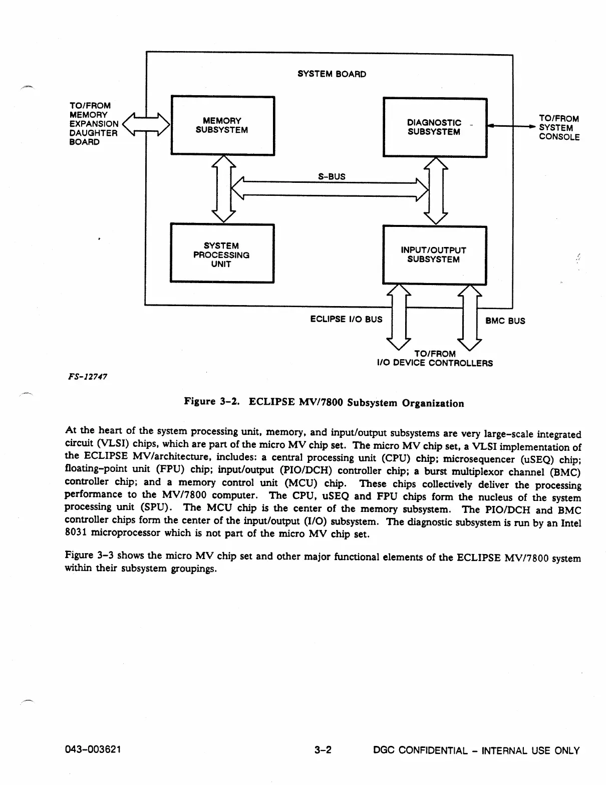 Figure 3-3 shows the micro MV chip set and other major functional elements of the ECLIPSE MV/7800 system