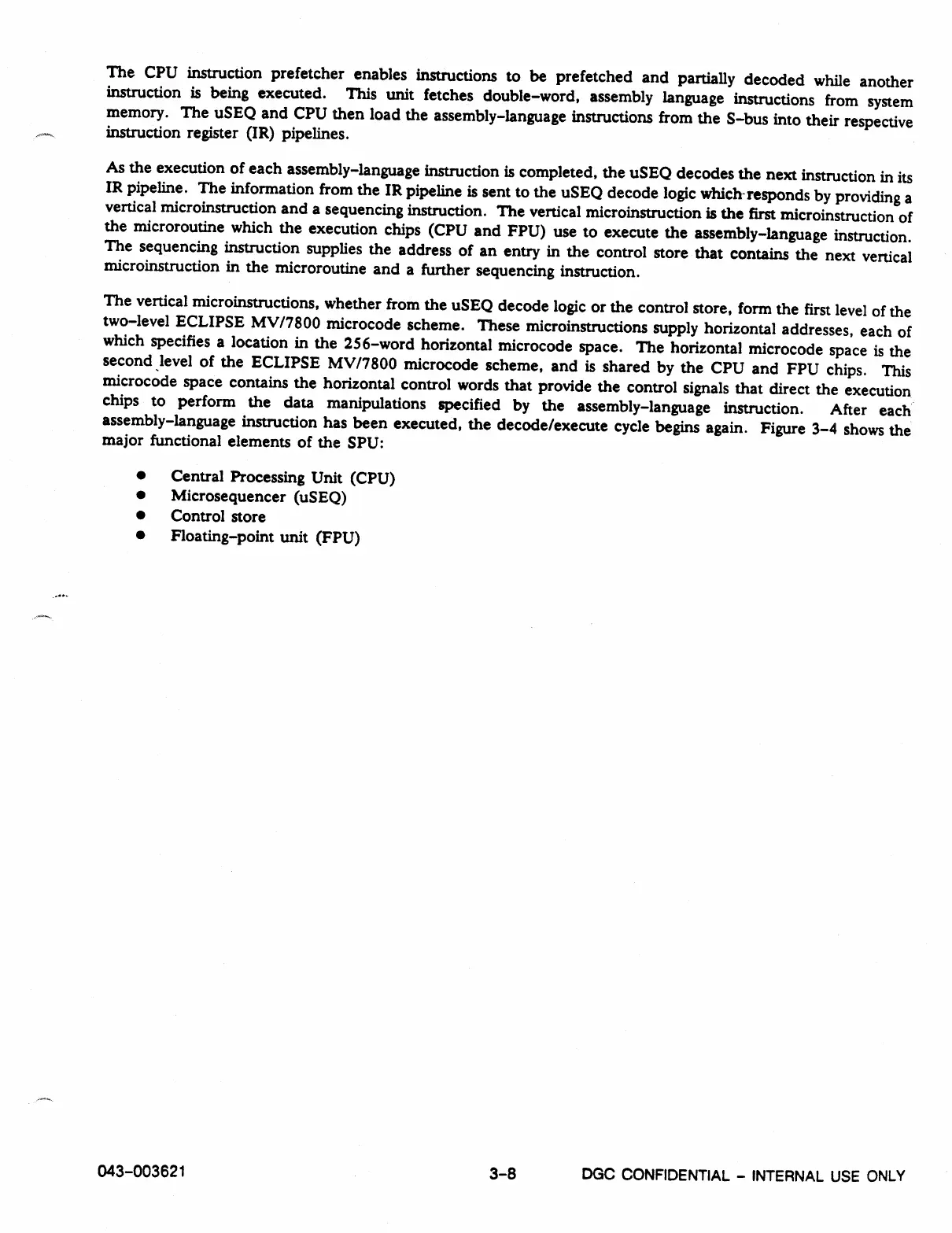 level of the ECLIPSE MV/7800 microcode scheme, and is shared by the CPU and FPU chips. This
