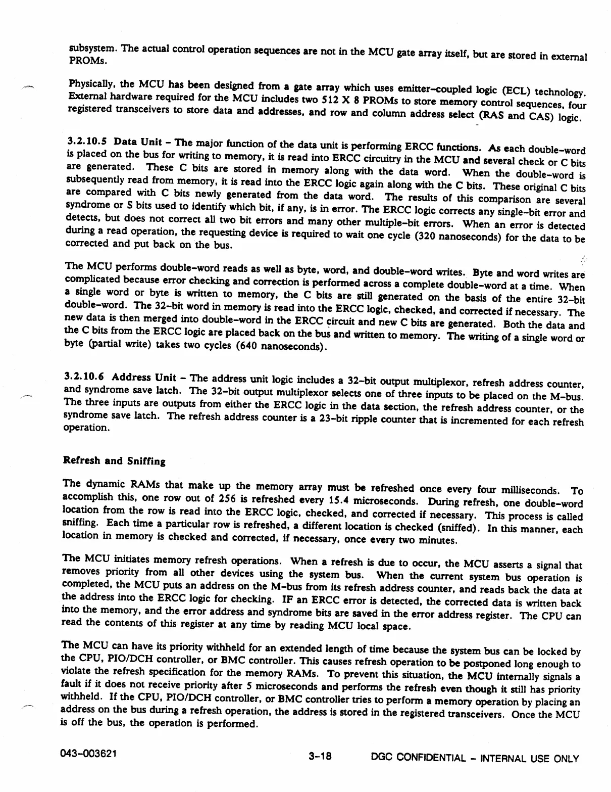 3.2.10.6 Address Unit - The address unit logic includes a 32-bit output multiplexor, refresh address counter,