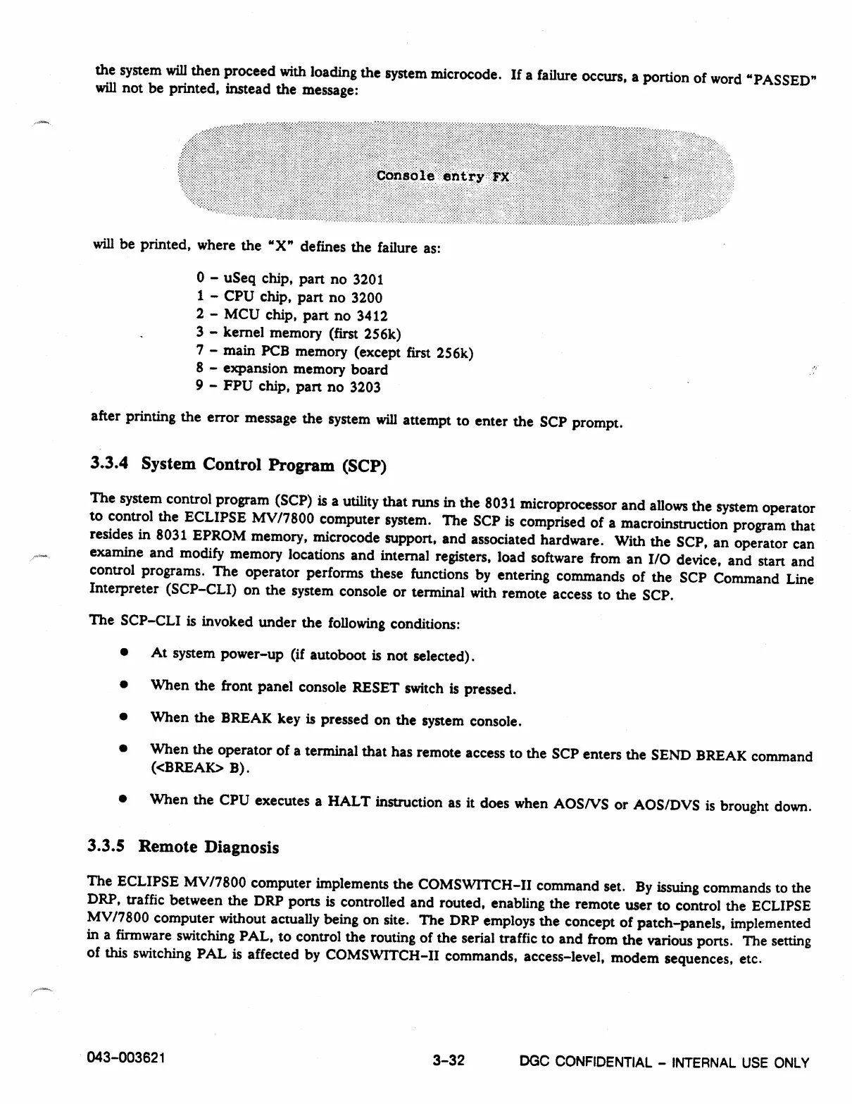 to control the ECLIPSE MV/7800 computer system. The SCP is comprised of a macroinstruction program that