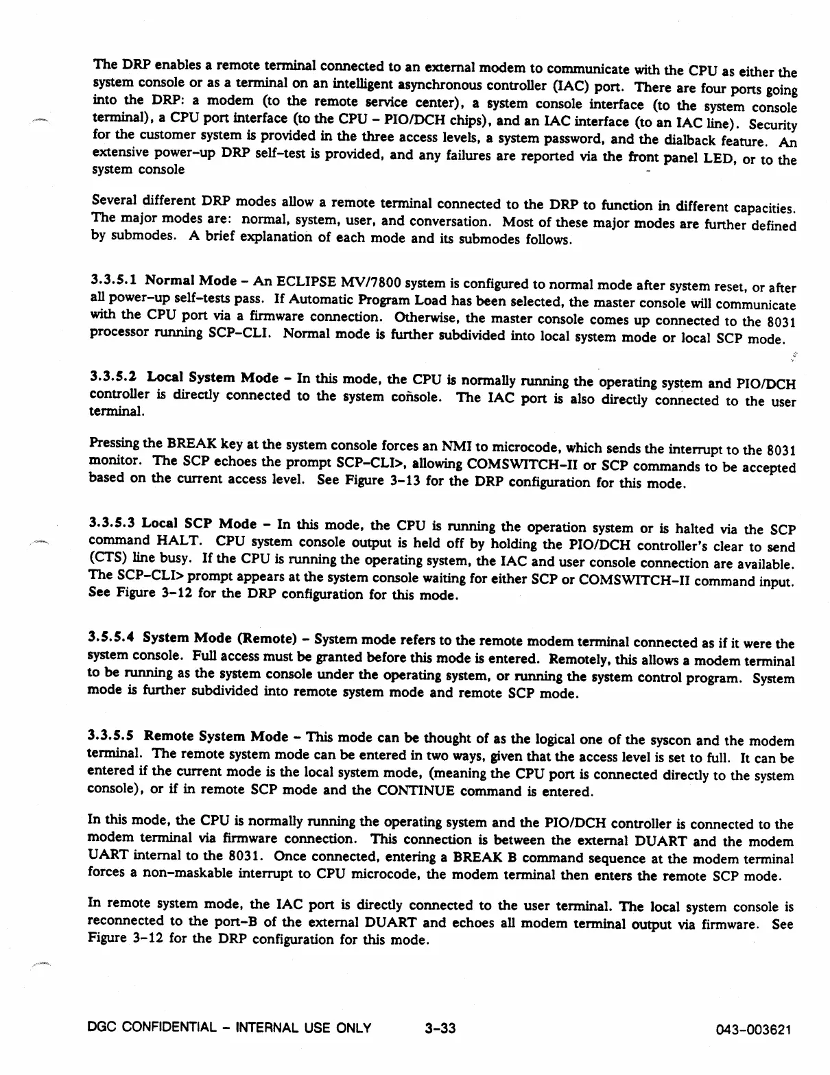 3.3.5.1 Normal Mode - An ECLIPSE MV/7800 system is configured to normal mode after system reset, or after