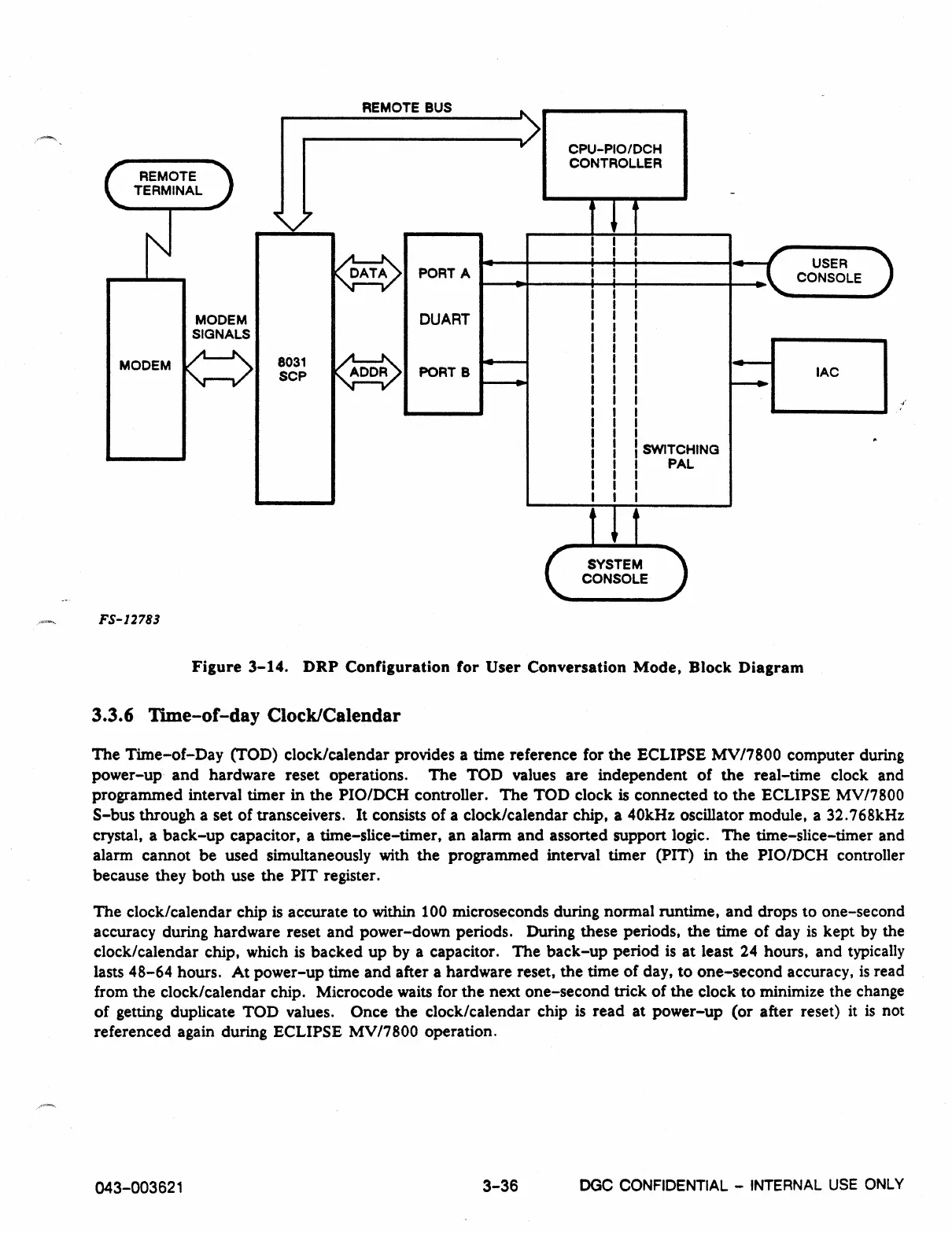 The Time-of-Day (TOD) clock/calendar provides a time reference for the ECLIPSE MV/7800 computer during