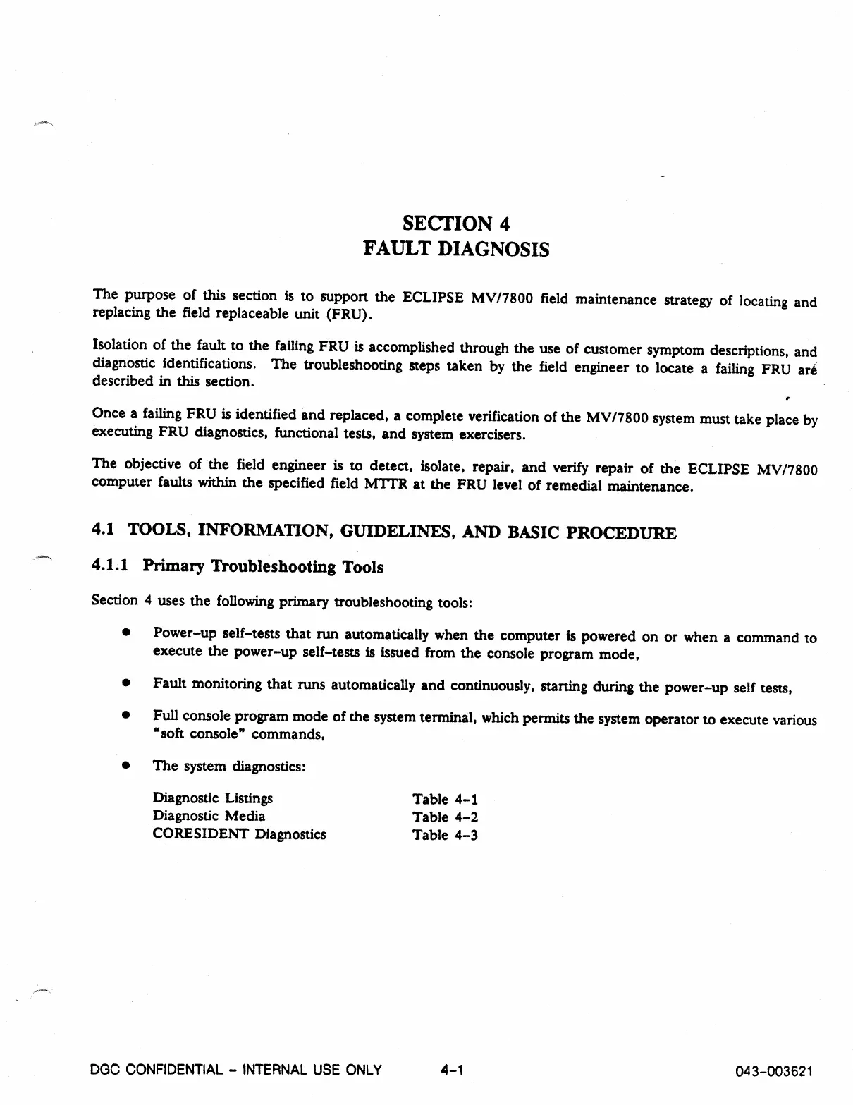 The purpose of this section is to support the ECLIPSE MV/7800 field maintenance strategy of locating and