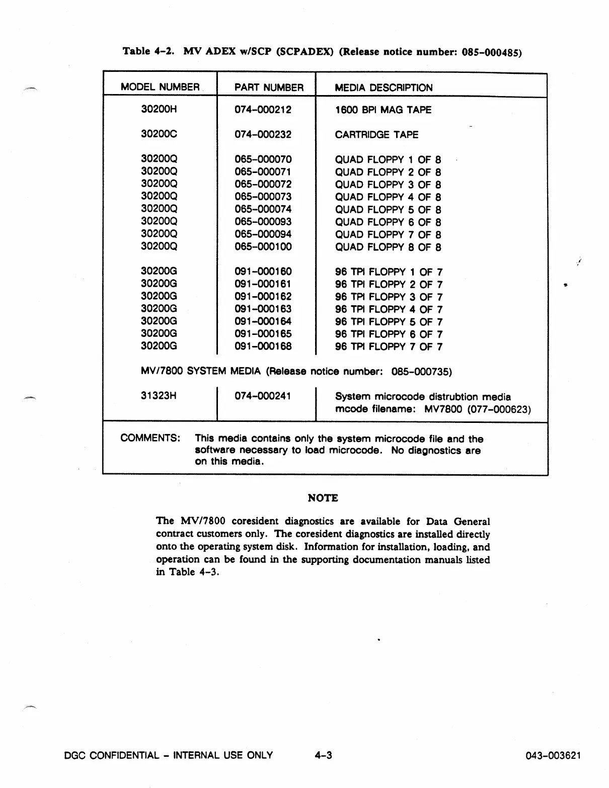 Table 4-2. MV ADEX w/SCP (SCPADEX) (Release notice number: 085-000485)