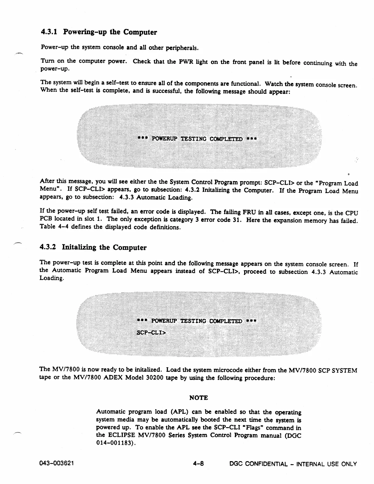 the Automatic Program Load Menu appears instead of SCP-CLI>, proceed to subsection 4.3.3 Automatic