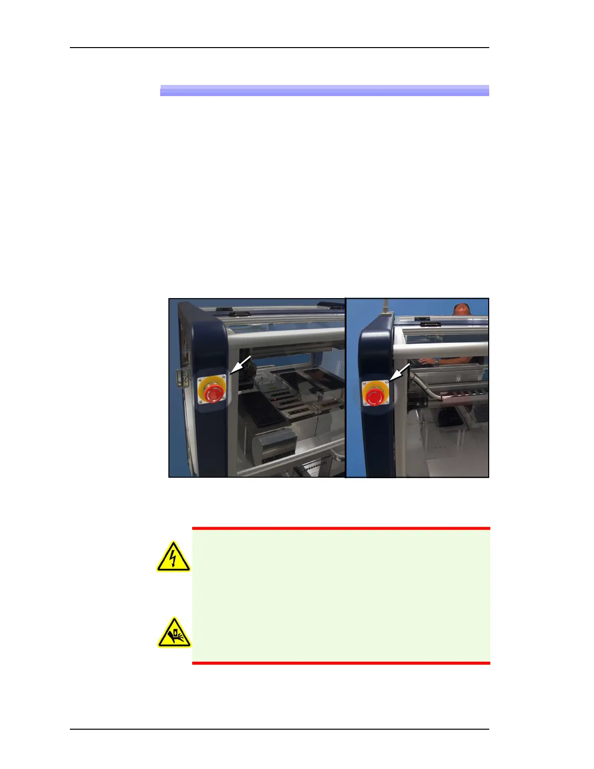 WARNING: Shock hazard! Pressing an E-Stop button removes