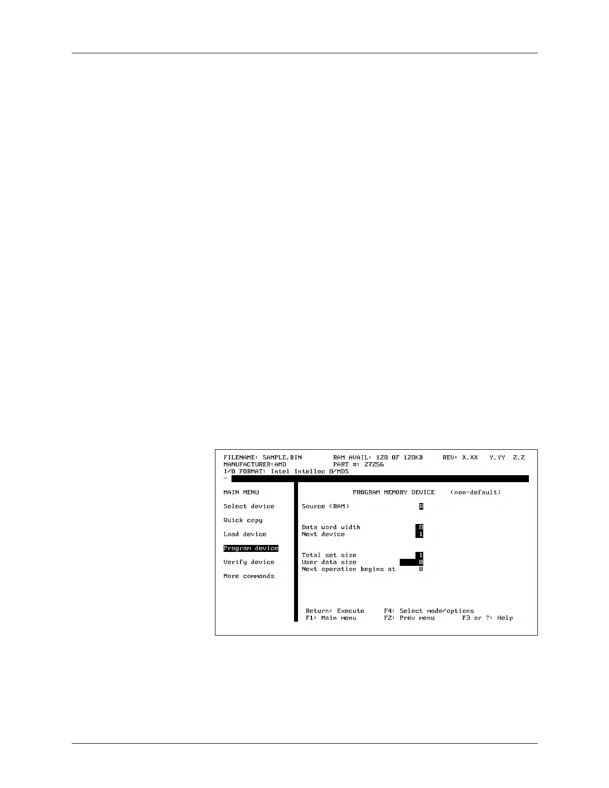 Parameter Screens After the data is loaded into RAM, select Program Device from the Main