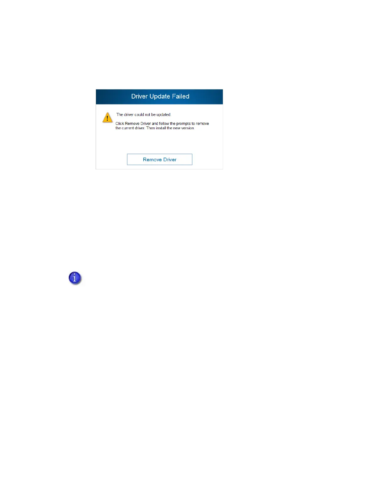 If the update fails to complete, the Driver Update Failed dialog box displays. Click Remove