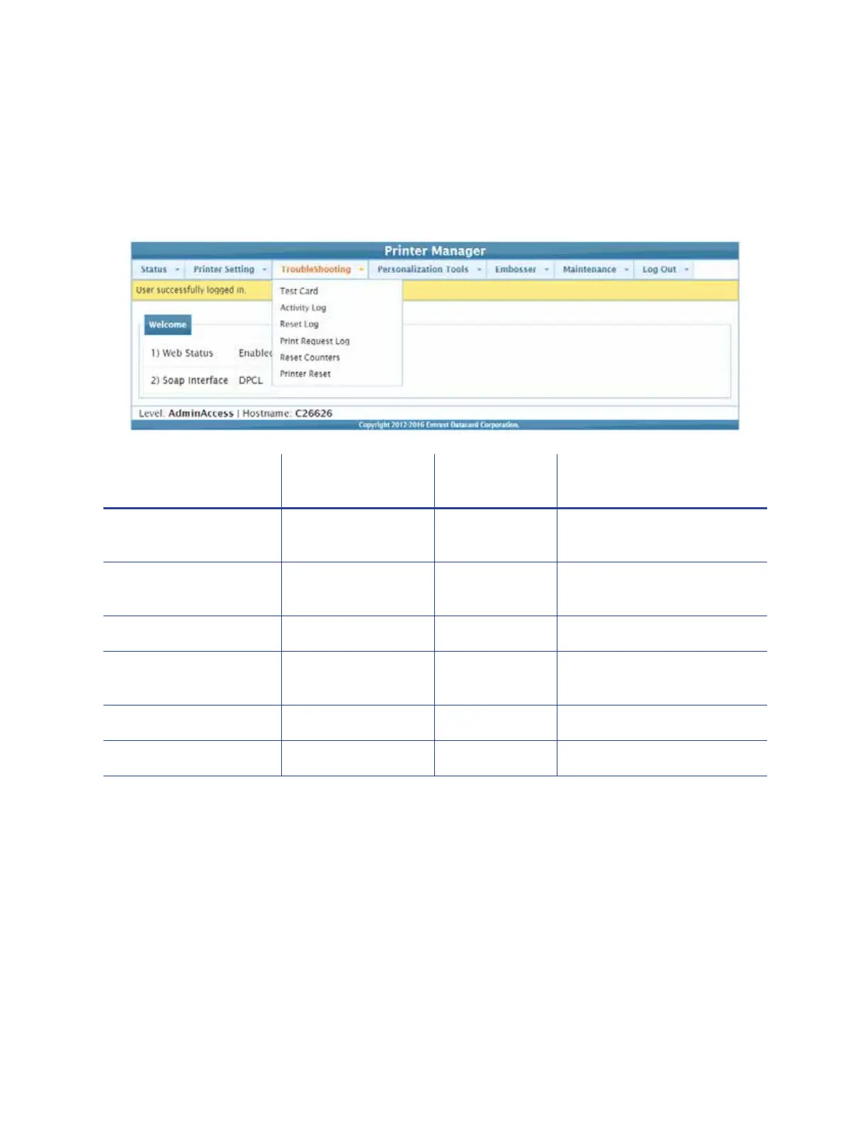 you isolate card production issues. Use the TroubleShooting options to print test cards, view and