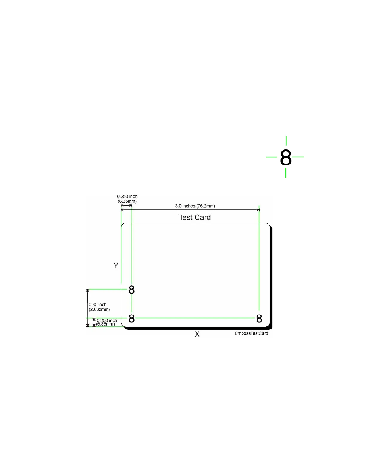 1. Verify emboss character position (test card 1).