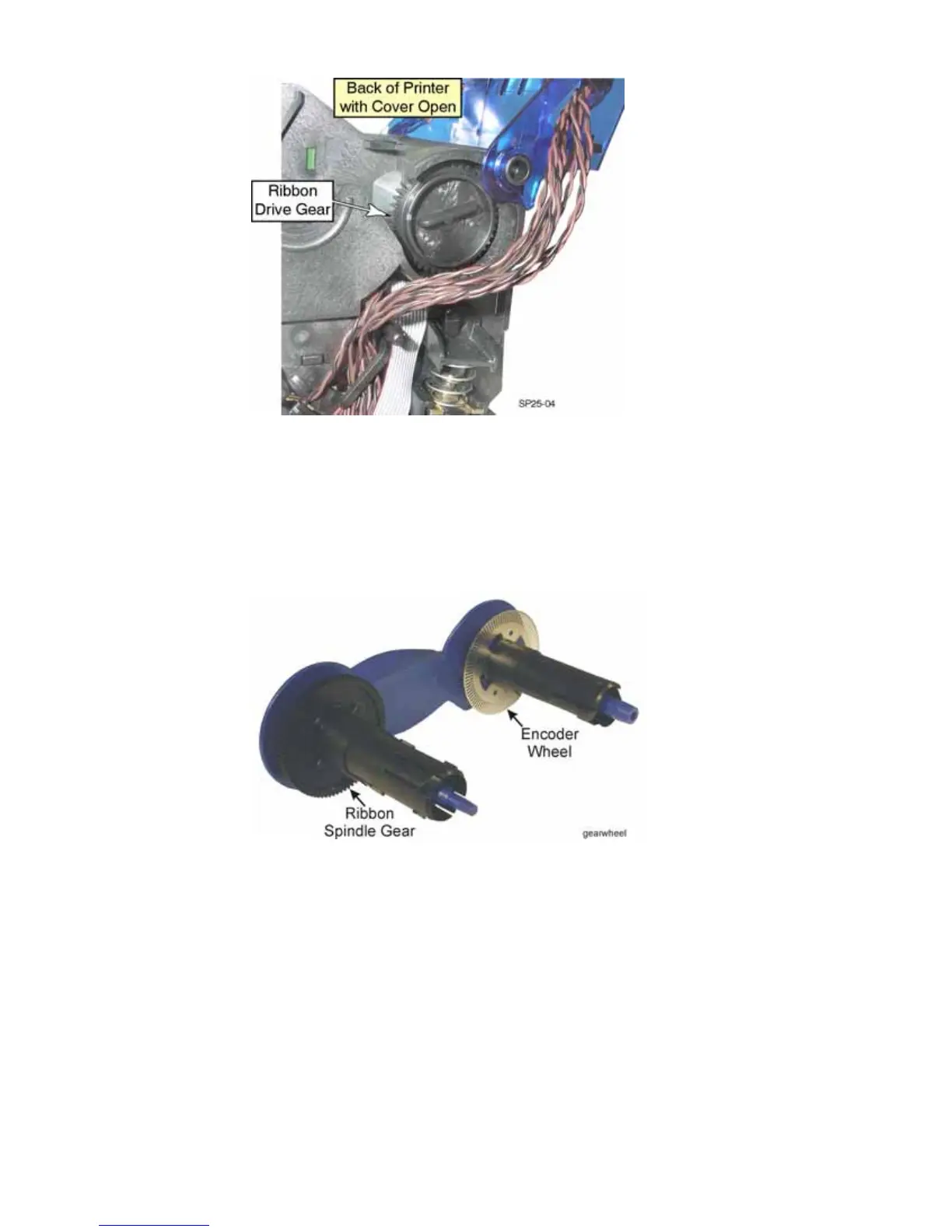 7. Inspect the print cam gear and motor gear on the underside of the printer for