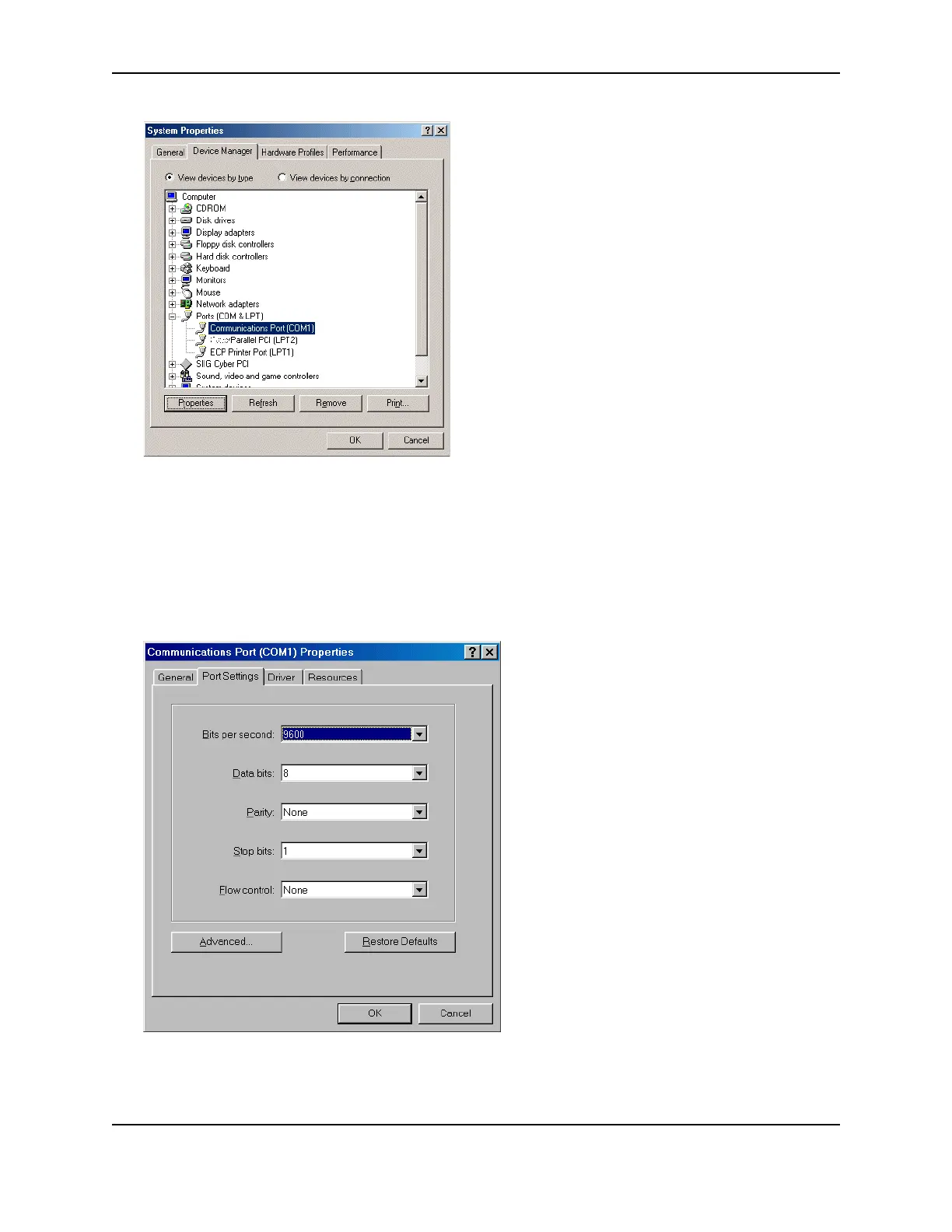 7 In the Communications Port Properties dialog box, click the Port Settings tab.
