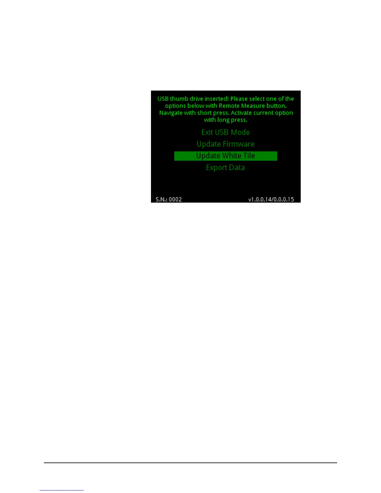 2. Updating the White Tile is initiated by selecting (short clicks) and activating (long