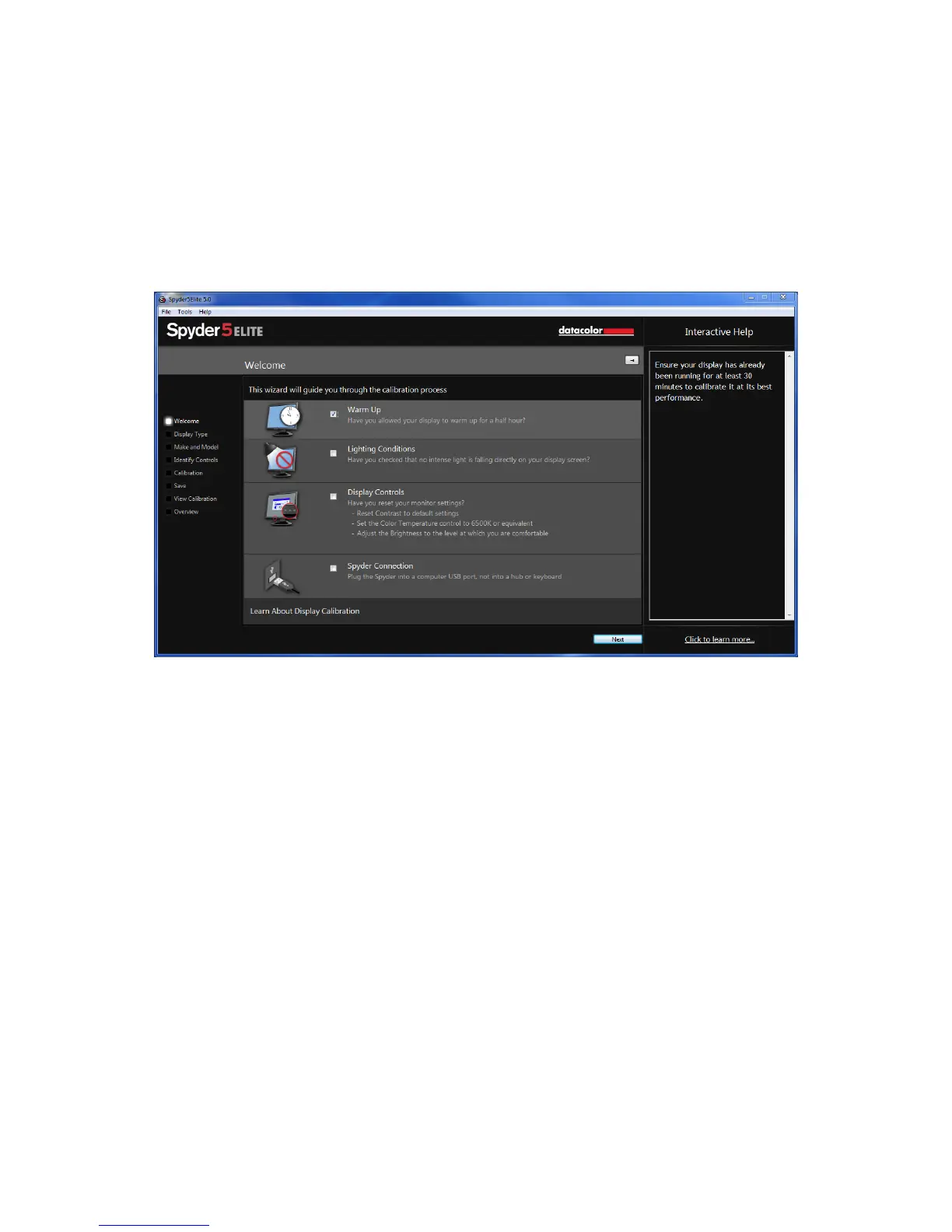 The first time you run the Spyder5ELITE software, you will be greeted with a