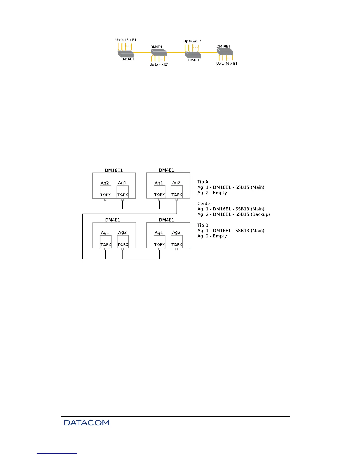 tributaries E1 (G.703) are used. Aggregate 1 is considered the main link and Aggregate 2 is the backup
