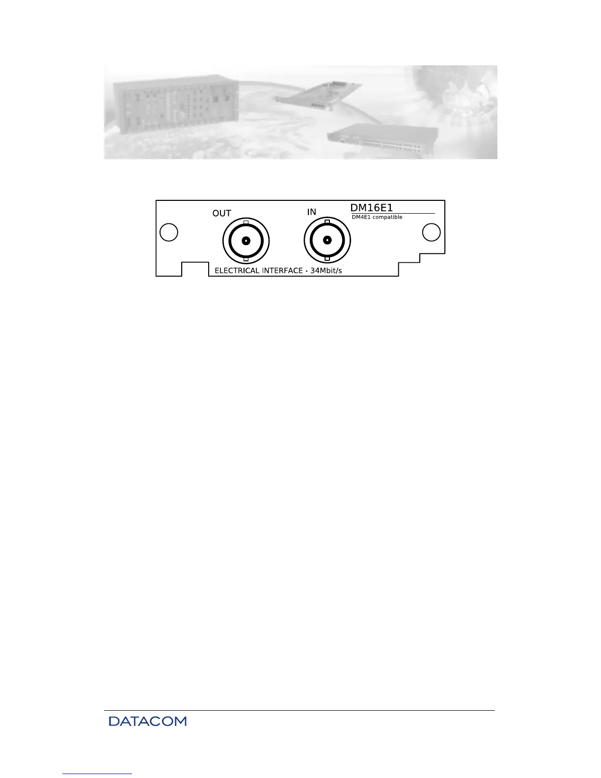 The DM16E1-E3E card implements an electric interface with a nominal speed of 34368 kbit/s,