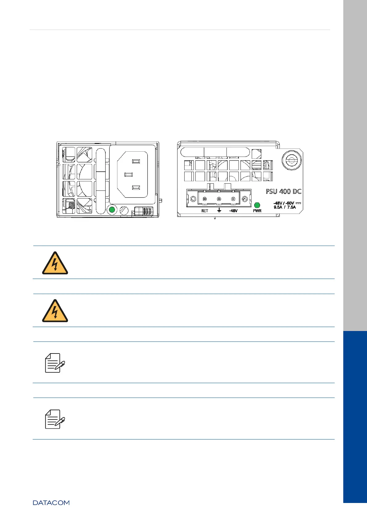Figure 14 - PSU 400 AC and PSU 400 DC front panel