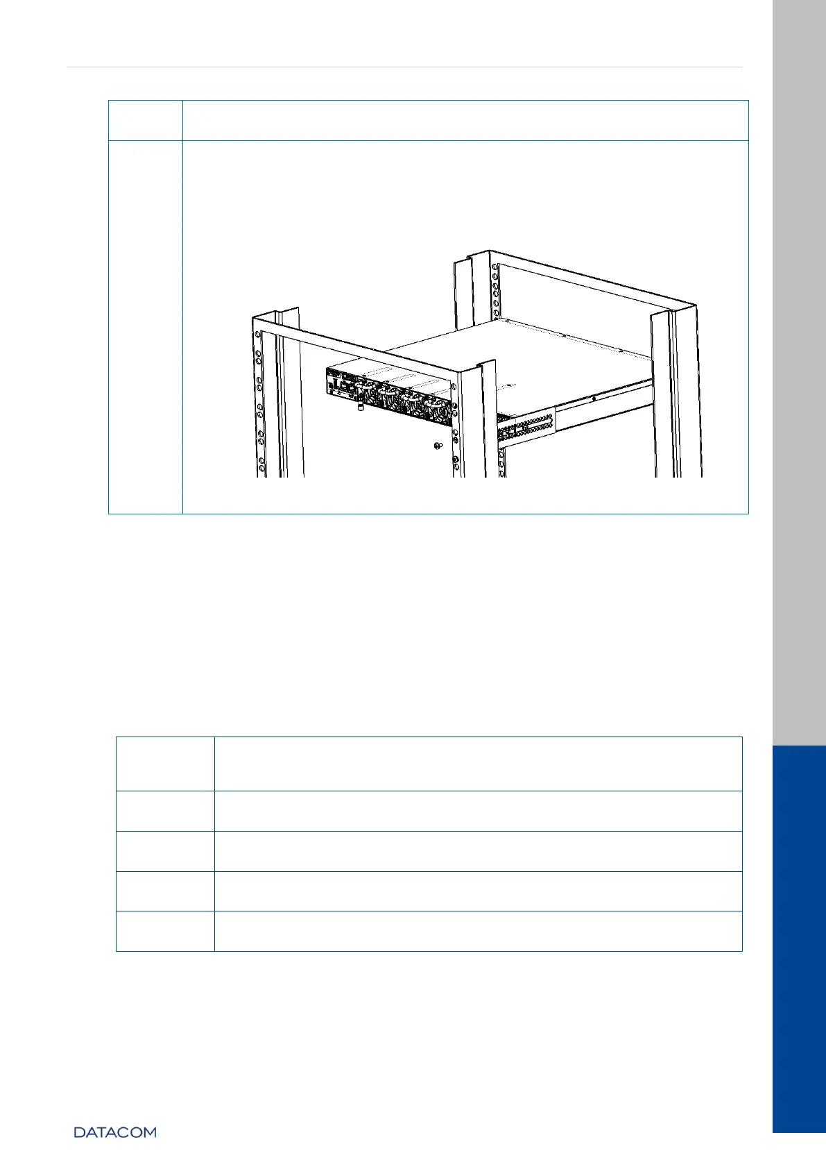 Table 14 – Installing the extension rail for rear mounting on the rack
