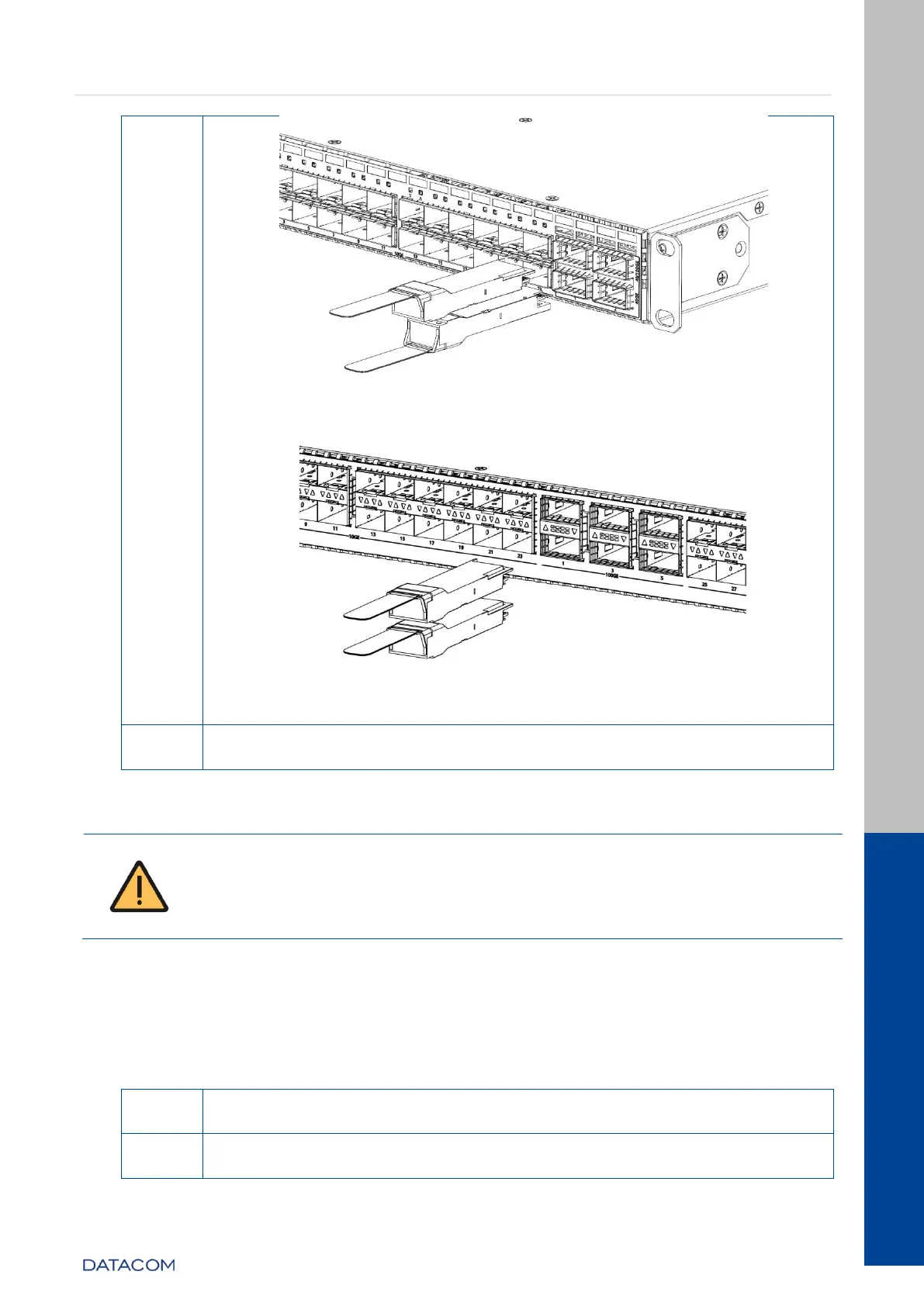 QSFP28/QSFP+ ports. Before to insert a transceiver in a port, remove the