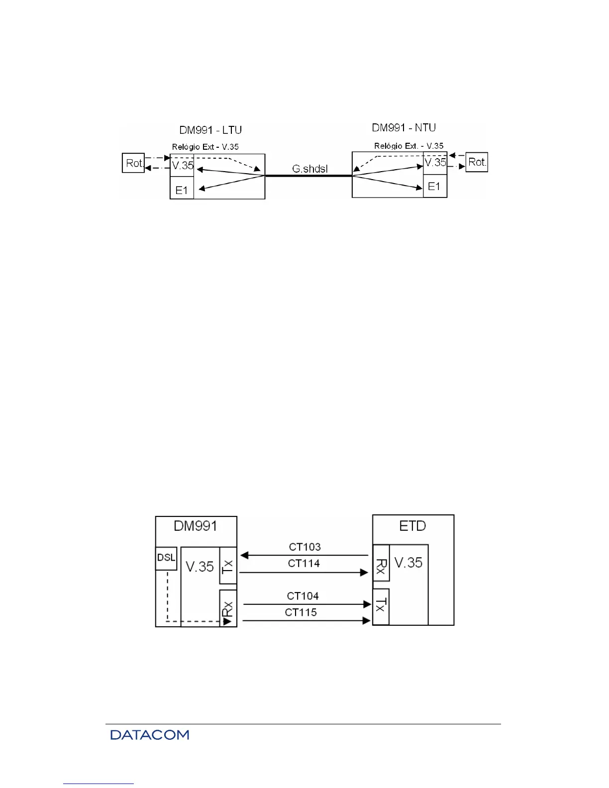 In this mode the V.35 uses the CT113 (transmission clock of the equipment connected to the DM991) to