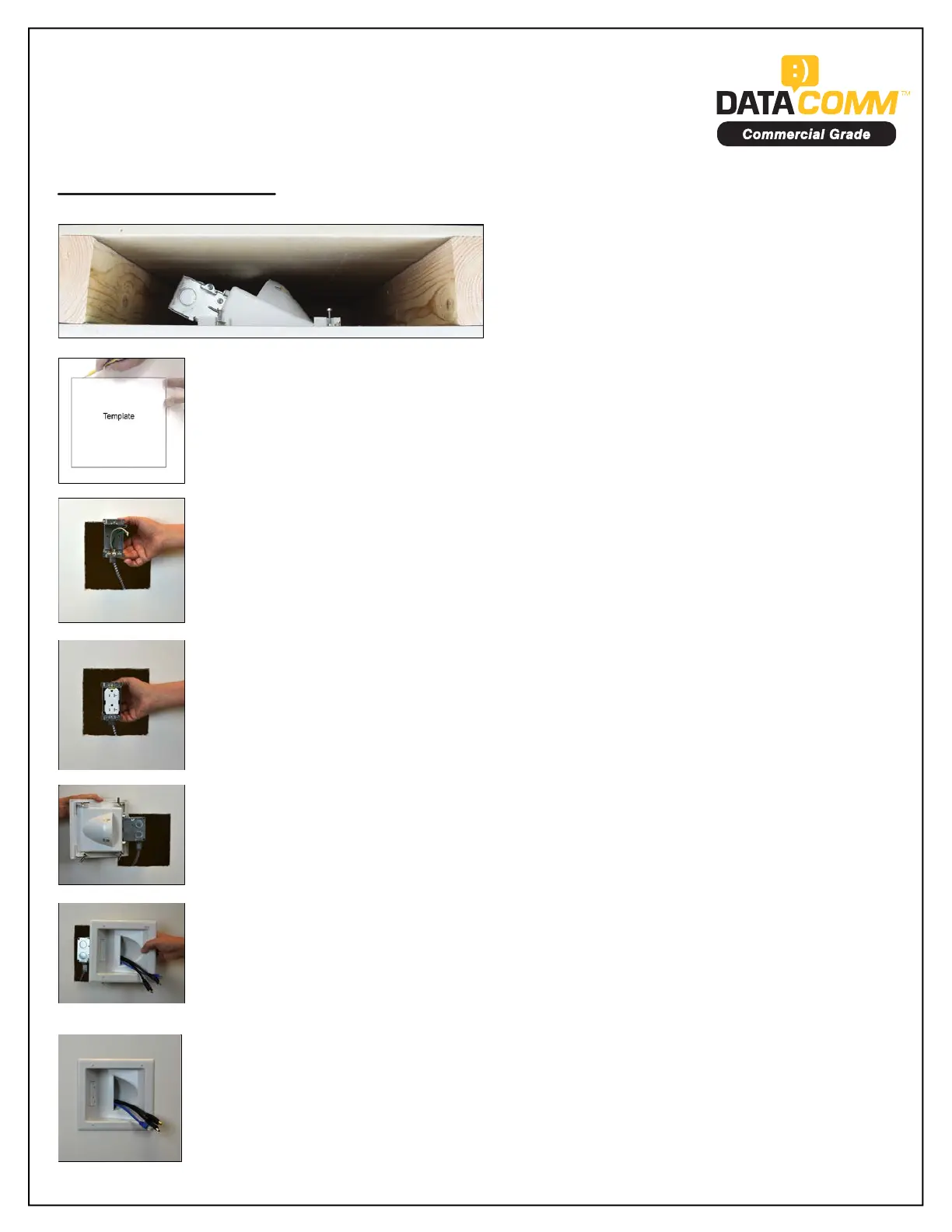 wall. Using a drywall saw or utility knife, cut a hole in the drywall the size of the template.