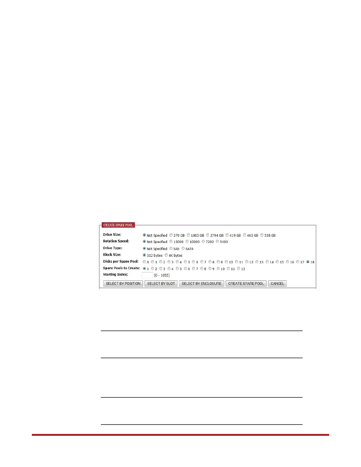 Figure 42. Create Spare Pool Screen
