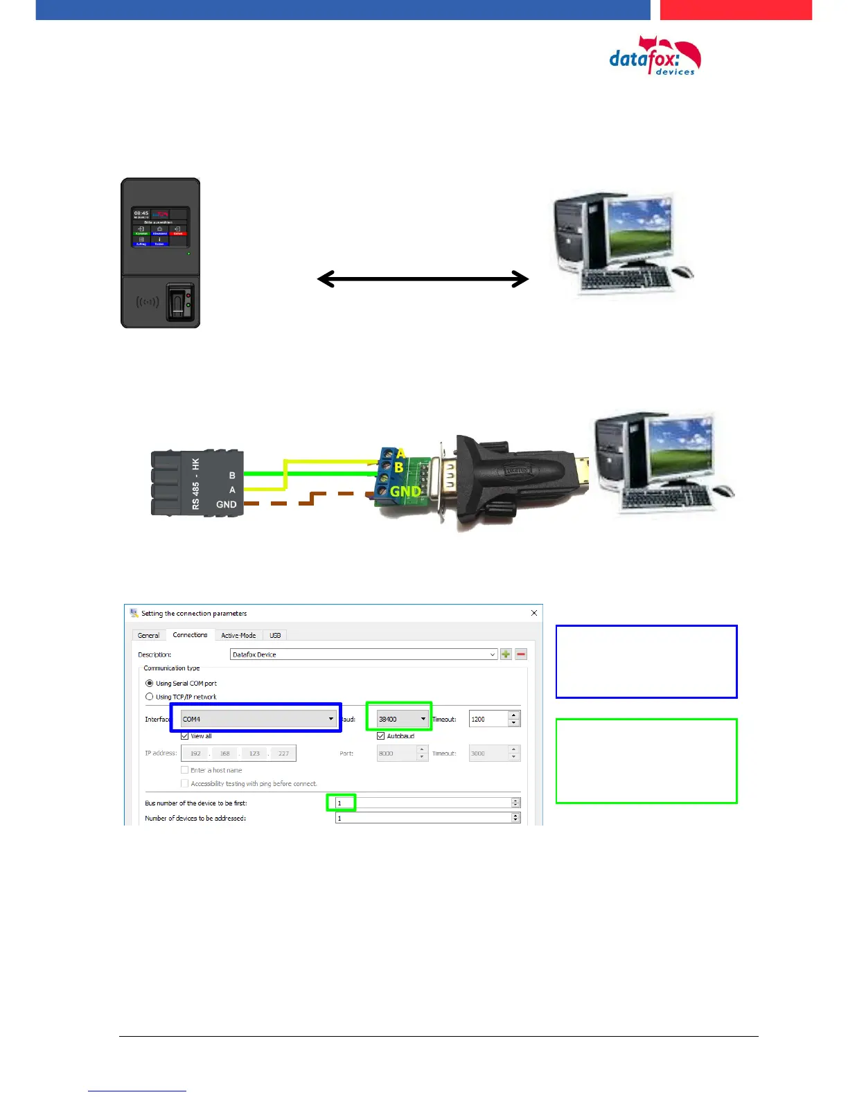 Setting for communication in the DatafoxStudioIV for connection via RS 485: