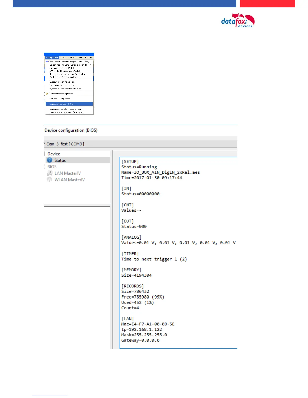 Datafox Evo 4.3 - Read out Important Module Information from the Device