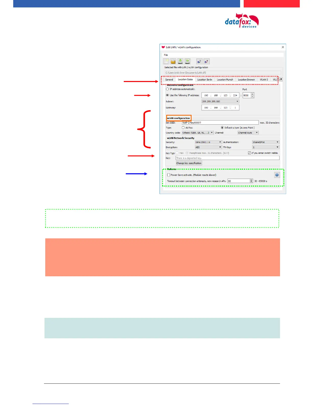 can be selected in the Bios menu -> Communication -> WLAN. Each location has its own configura-