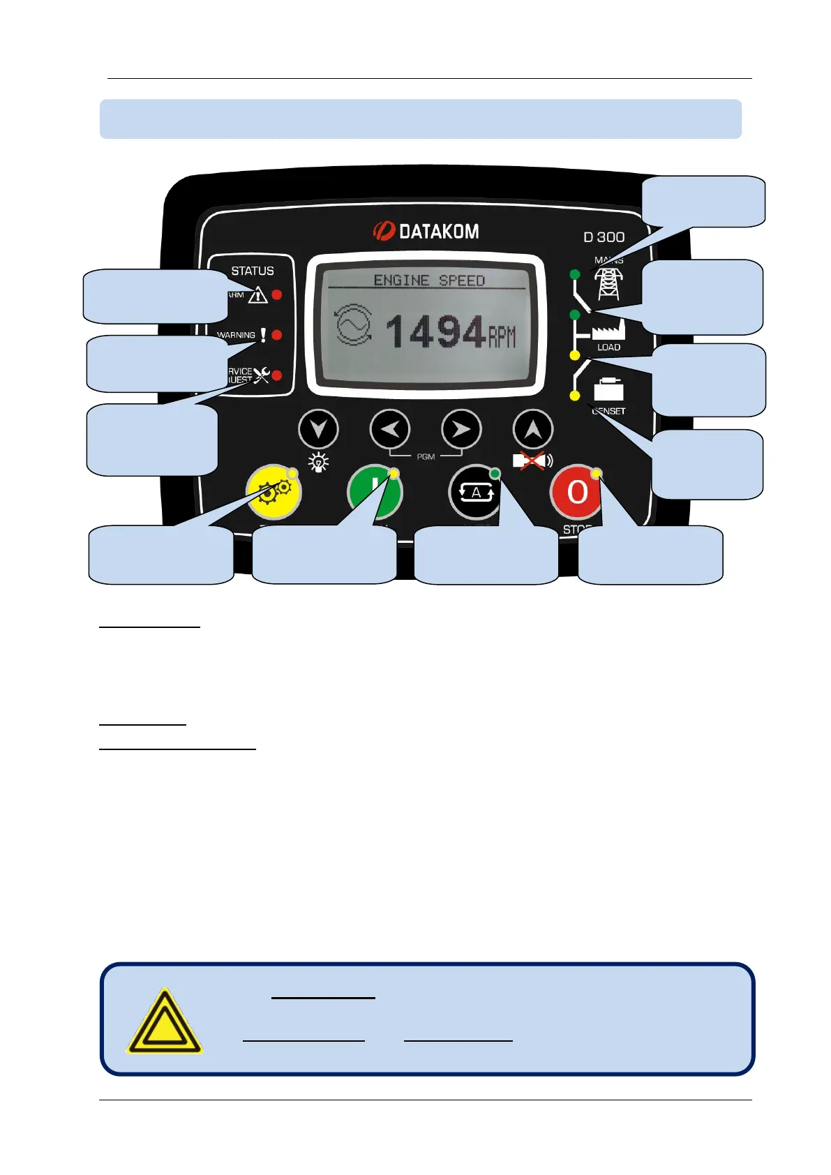 GENSET AVAILABLE: This led turns on when all genset phase voltages and the genset